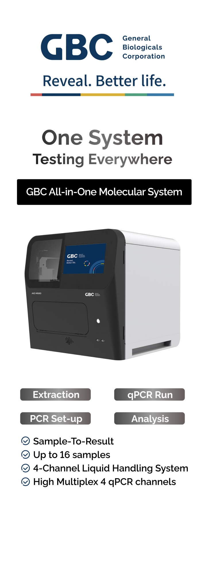 GBC All-in-One Molecular System is a flexible and fully automated platform. It consists of a liquid handling module for sample extraction and PCR set-up and a real-time PCR module for nucleic acid amplification, detection, and data analysis.It is a new fully automated nucleic acid testing device. It can simultaneously process up to 16 sets of samples in just 1-2 hours. Furthermore, it completes the entire process from extraction to PCR analysis on a single machine. This approach effectively mitigates the risk of cross-contamination, ensuring rapid and accurate results in nucleic acid sequence analysis.