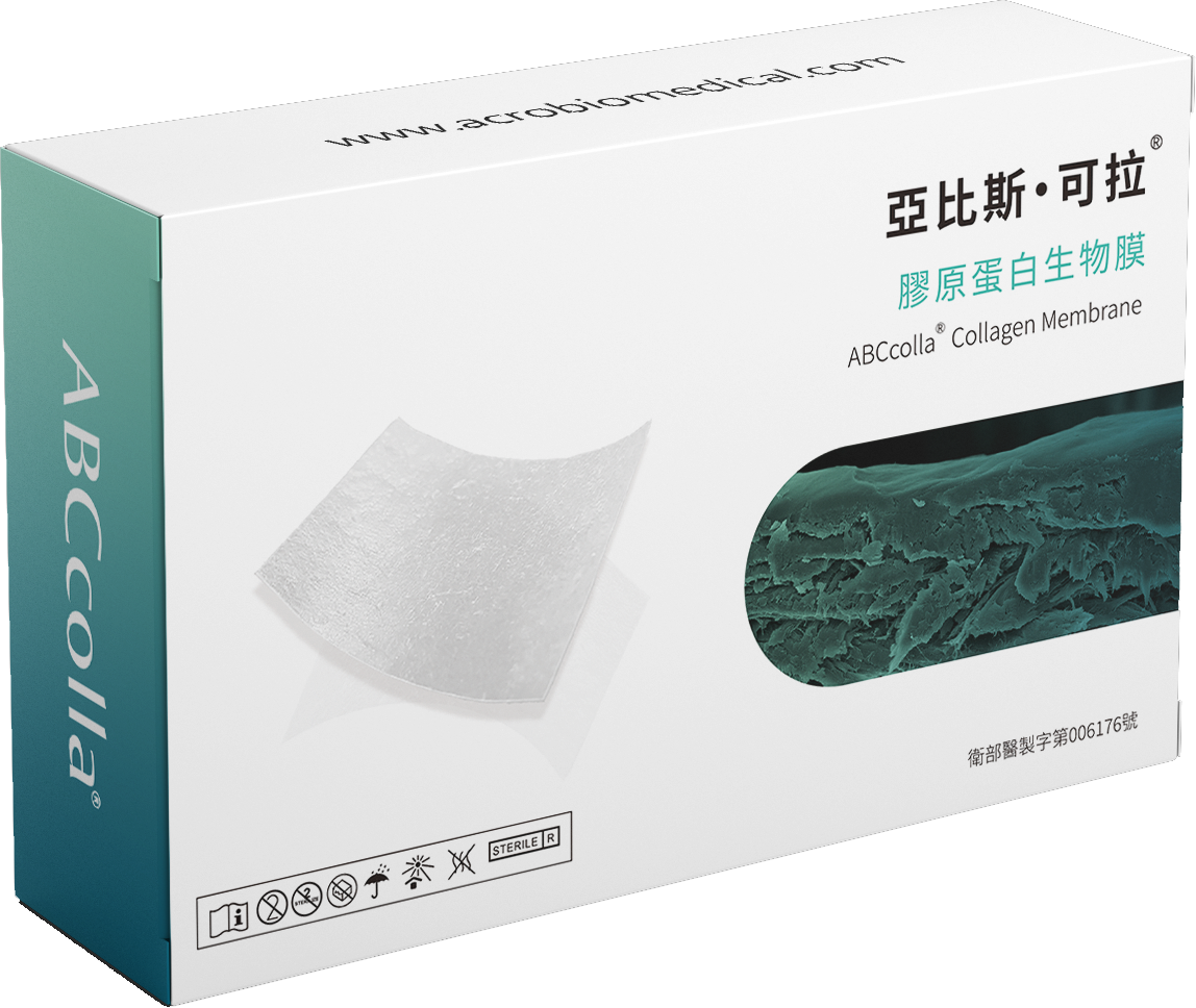 本產品為生物可降解、可吸收性、植入式之天然膠原蛋白結構,主要用於牙科手術以輔助組織的修復、再生和整合,並可與骨填補材料併用﹙如:自體骨或骨替代物﹚,於缺損處作為維持空間的屏障以引導骨膜組織再生,如:
