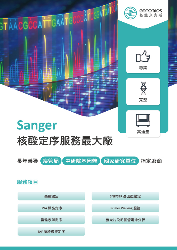 本公司「高速核酸定序實驗室」通過 TAF ISO17025 認證,成為國際標準實驗室,提供顧客高品質的核酸定序測試服務
