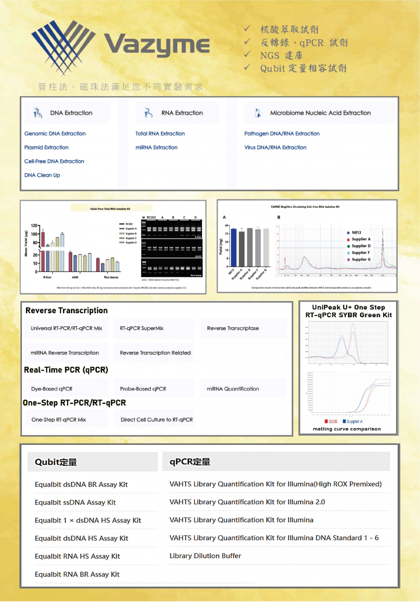 -分子診斷 : 為分子診斷企業提供qPCR/qRT-PCR Master Mix、DNA聚合酶、digitalPCR等相關產品,包括訂製化服務方案。