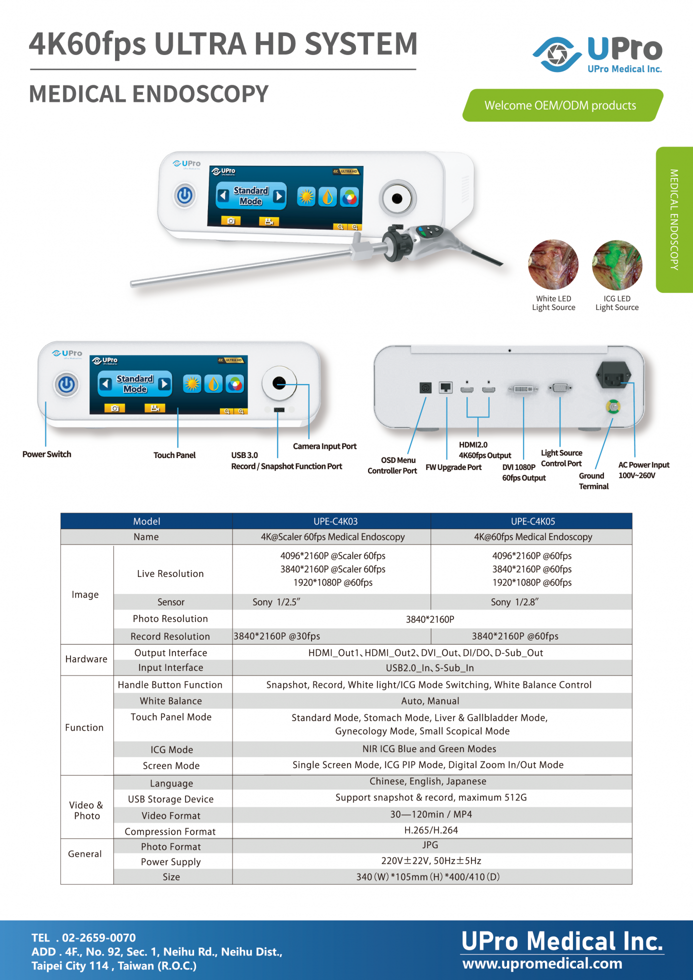拍照、錄影、白光/ICG模式切換、白平衡控制