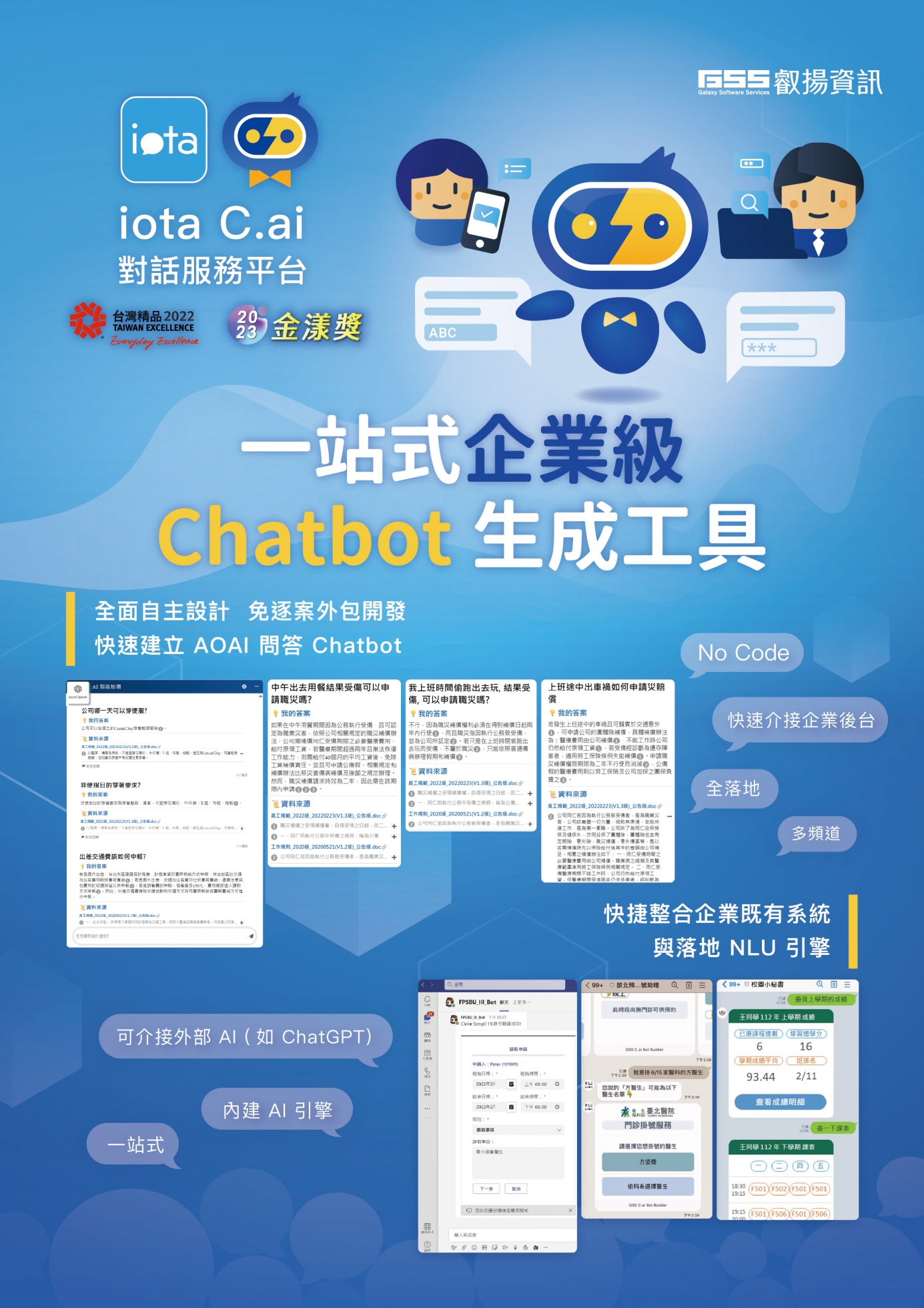 提供「企業級」的「對話式」IT服務機制,以最完整、快捷的建置/管理介面,協助企業以最經濟的方式搭建出比行動化更高效的IT服務。不需撰寫程式,利用Web介面進行Chatbot互動步驟及互動內容之設計,因此非IT人員也能輕鬆設計優於業界的Chatbot流程及卡片式對話。另外,可介接企業既有系統API,提供用戶透過「聊天室」就能直覺存取各式企業後台資料的高效作業體驗,協助企業在流程效率得到提升。
