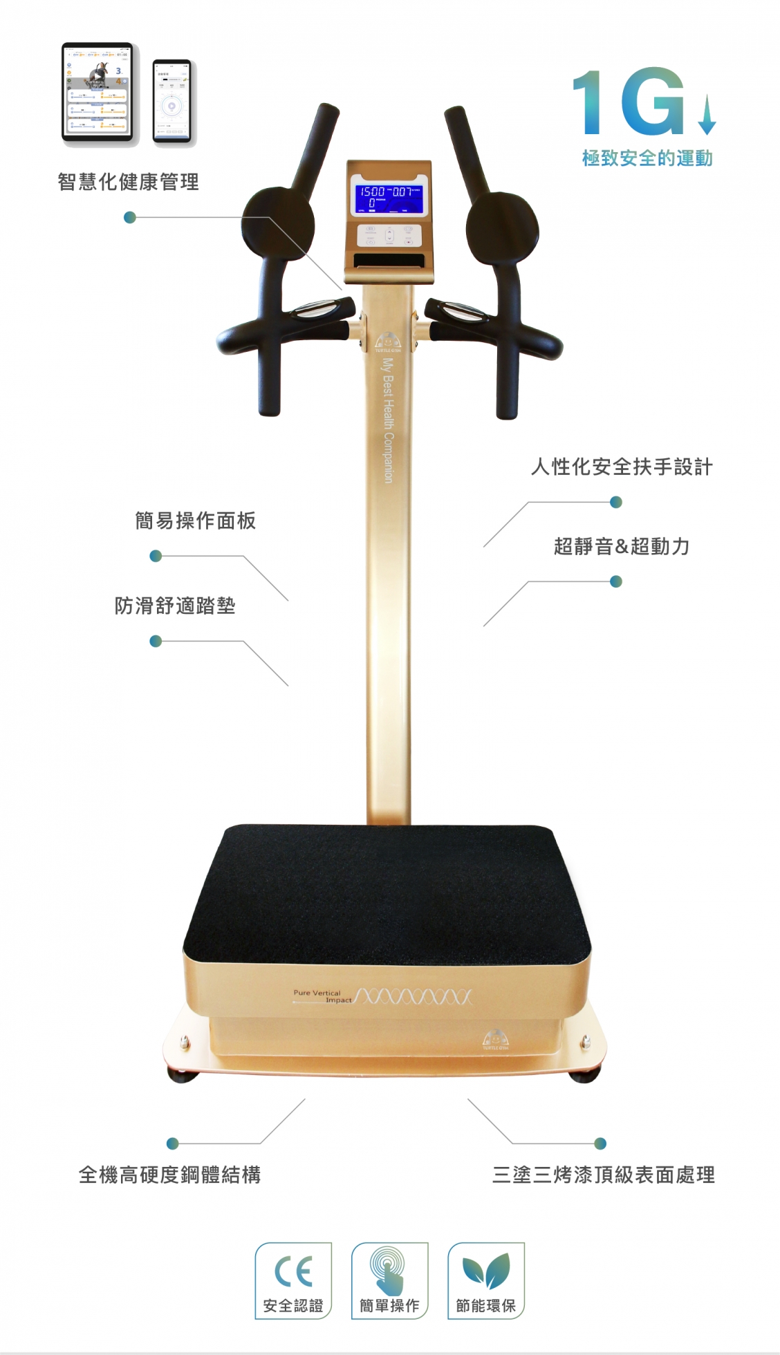 全身垂直律動的原理是透過機器,讓站在上面的人產生一種對抗地心引力的向上推力,推力一停,站在上面的人就又接受地心引力向下,連續來回、快速上下的衝擊力量。