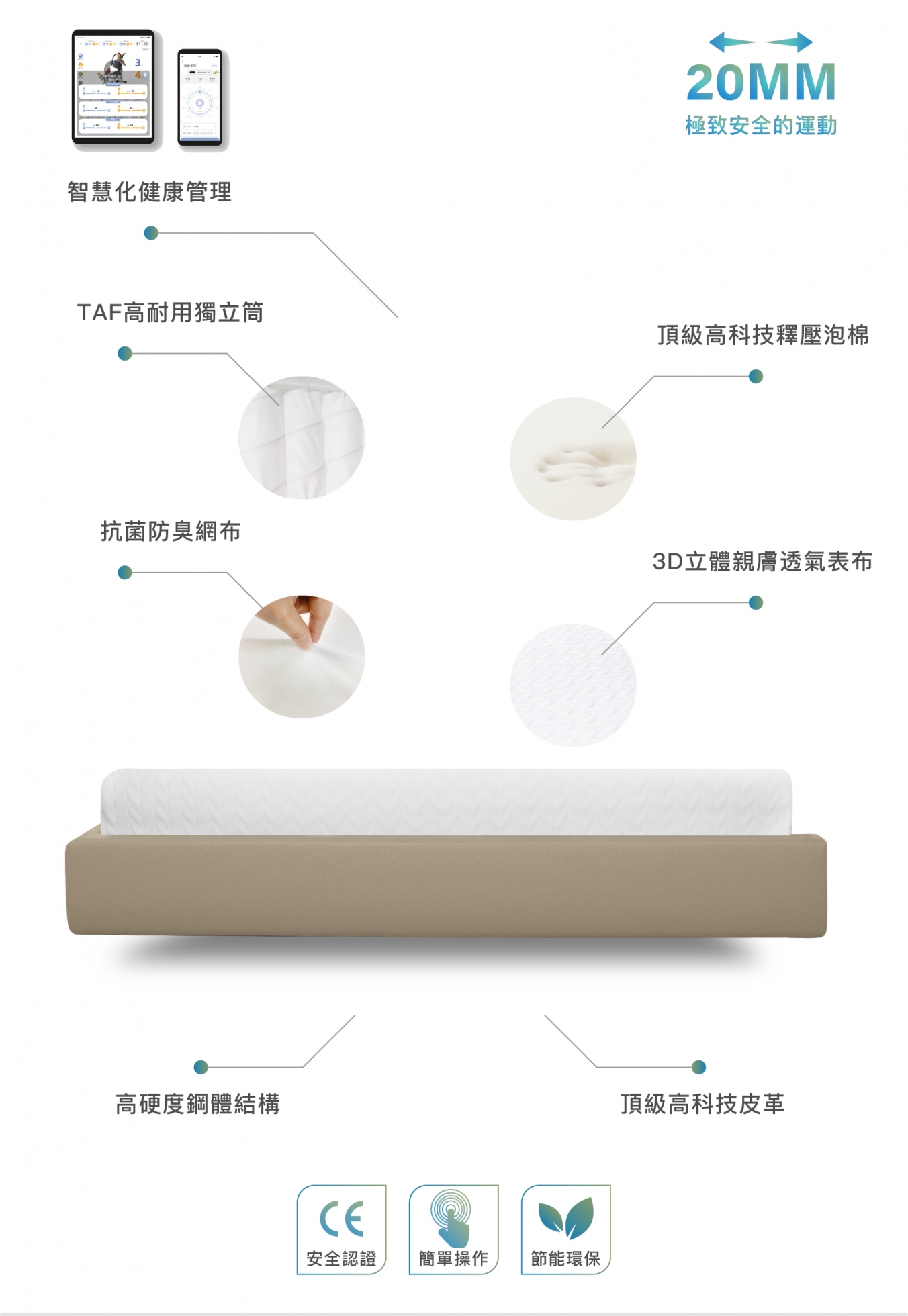 ✔️ 超靜音水平律動模式,安心熟睡也能達到舒壓運動。