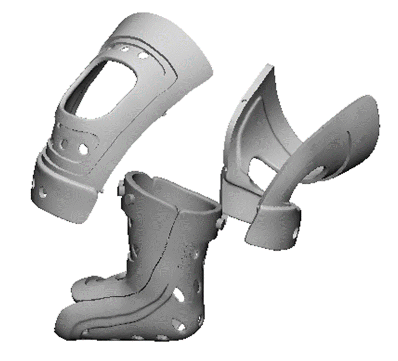 二、特色:客製化矯正輔具,利用3D列印技術,根據患者足部形狀精確製造矯正輔具,確保最佳貼合度,通過增設緩衝空間、使用緩衝材料、加強結構設計,提升肢體矯正輔具的配戴舒適性,同時強化輔具結構強度,使其更耐用可靠。
