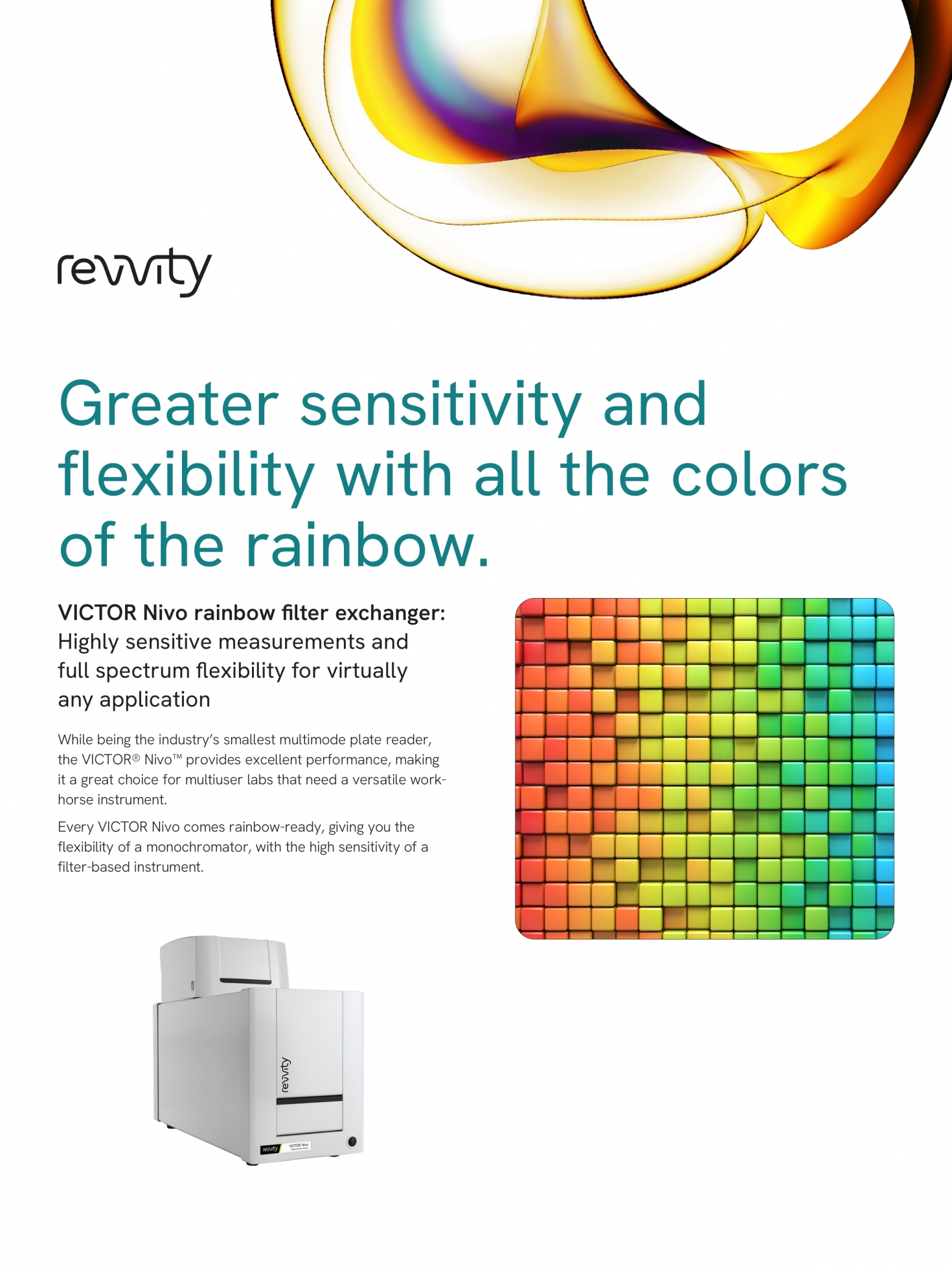 獨特的光學輪盤式濾片自動轉換器, 最多可放置 32 組濾光片, 濾片自動化切換免拆裝, 可滿足各種不同實驗的需求。同一片濾片可依需求應用在激發光過濾片 (Excitation) 或是散射光過濾片 (Emission), 增加濾片的應用性。內建溫控系統, 最高可達 65°C。VICTOR Nivo Enhanced Security 增強安全性軟體, 能符合FDA 21CFR11、EU附錄11等規範。基於瀏覽器介面的操作軟體, 用 Wi-Fi 連線即可遠端操作。適用 1–1536 wells 等各種微量多孔盤。