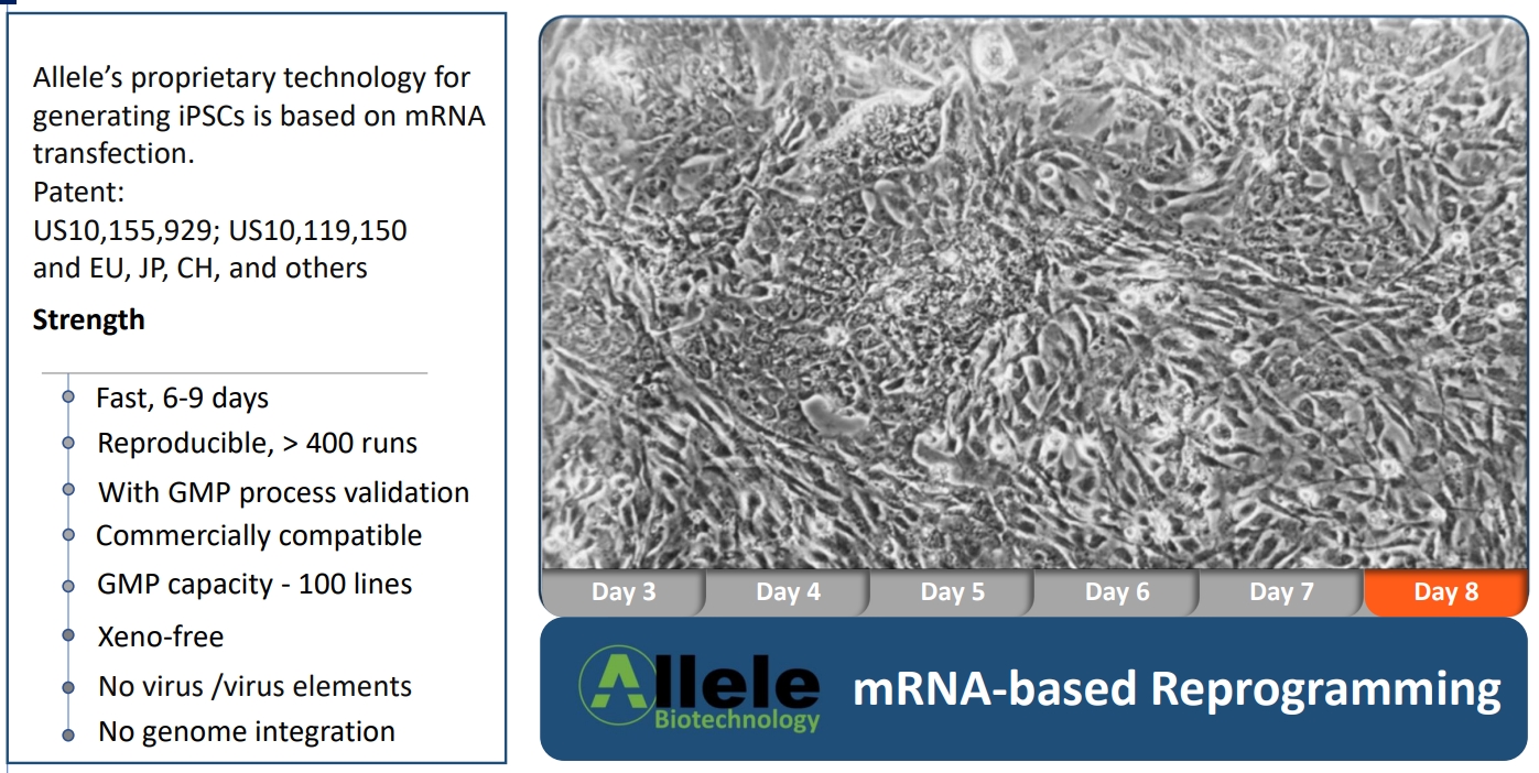 iPSC(誘導多能幹細胞)是一種能從體細胞中逆轉編程得到的多功能幹細胞,具備與胚胎幹細胞相似的分化潛力,能轉化為多種不同類型的細胞。Allele提供臨床級 iPSC 細胞儲存讓您能夠安全儲存自己的細胞,並在 FDA 認證和 cGMP 合規的條件下,將其重編程為多功能的誘導多能幹細胞 (iPSC)。這些 iPSC 可以轉化為各種細胞類型,,如神經細胞、心肌細胞、肝細胞、胰島β細胞、自然殺手細胞等,用於治療帕金森氏症、心臟病、糖尿病、癌症等多種疾病。