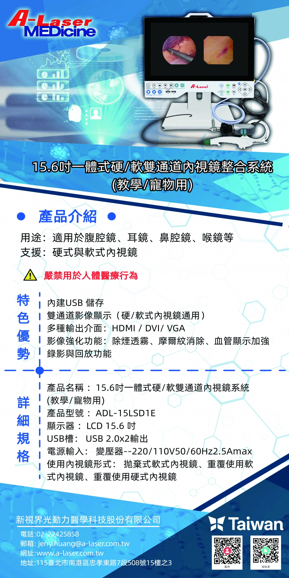 1. 創新顯示螢幕 + LED 光源 + 硬式內視鏡拍照、錄影系統 + 軟式內視鏡拍照、錄影系統的整合式設計,一機多用,適合不同科別多樣化需求,降低採購成本。