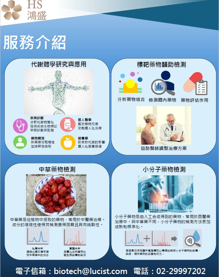 1.使用液相層析-質譜聯用(LC MS/MS)技術,可將樣品中L-色胺酸及代謝物進行定量及定性。